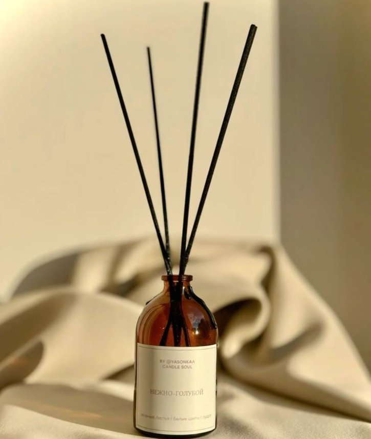Элегантный диффузор объемом 50ML - Это идеальное сочетание стиля и натуральности. Изготовлен из 100% натуральных и безопасных компонентов, он наполняет пространство тонким ароматом, создавая атмосферу уюта и гармонии.
